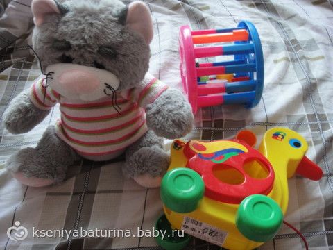 и у нас такой же, подарили на годик. но пока не интересен ребенку, маленький наверно еще, а нам с мужем нравиться) так смешно говорит: «переверни меня»", когда бошкой вниз держишь его))