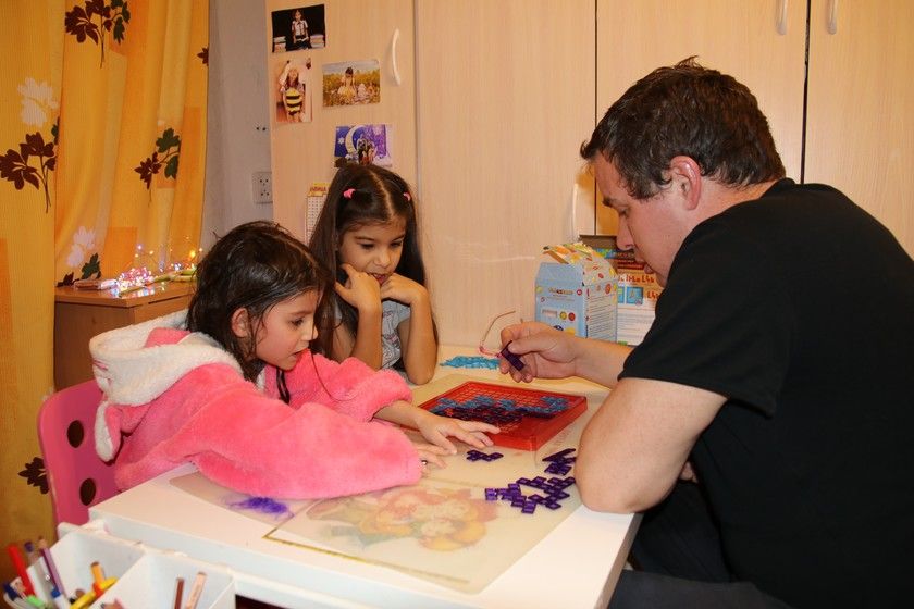 Вечером мы всей семьей играли в настольные игры. Вернее мы играли, а Викуля активно мешала — хватая все, и перекладывая куда не надо)
