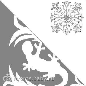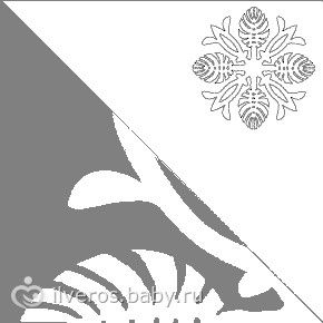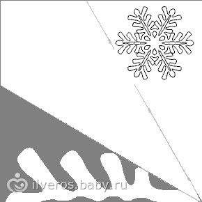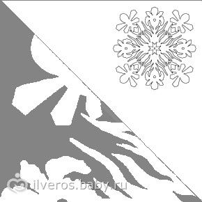 в правом верхнем углу расположена изображение уже готовой снежинки в итоге, а в левой части тот рисунок что вы должны нарисовать на сгибе бумаги после её сворачивания )