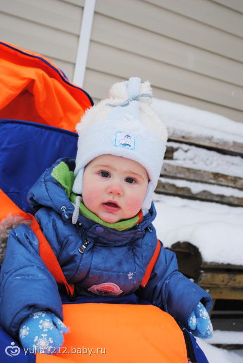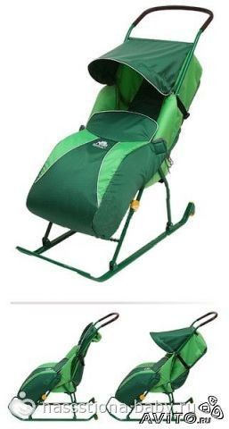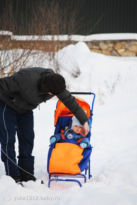 как раз в 7 месяцев сели в такие, классные веревки развязал сзади и спинка откинулась, спал малый на морозе отлично, проходимые, с навесом, 2 зимы откатались, но мы загородом живем, снега много, в городе мож и не так удобно
