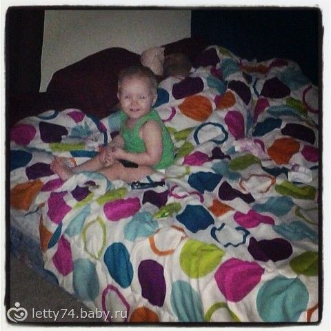 она с утра берет пульт, включает ТВ, кладет пульт обратно и лежит смотрит. Смотри у нее тут пульт на коленках лежит) она потом с пультом в гостиную убежала, там телек включила) скучно ребенку стало))