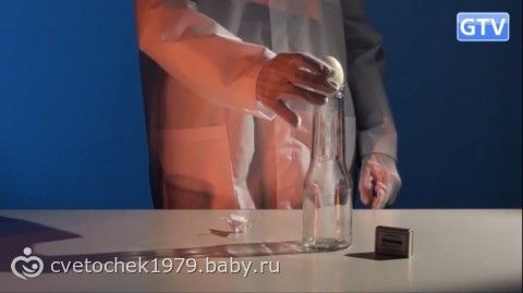 Для опыта понадобится: вареное куриное яйцо, бутылка с широким горлышком, но меньшим чем диаметр яйца, спички, бумажка.