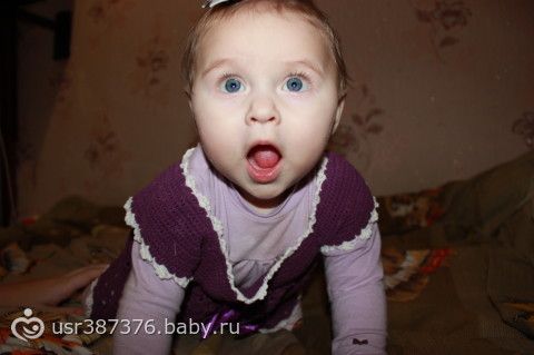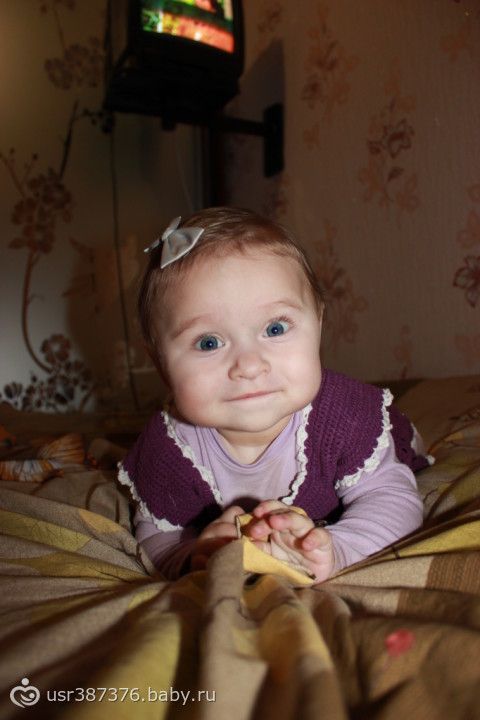 10.12.12 нам было 8 месяцев! Ура!!! Весим мы 9100 и 72см! За последнею неделю столько произошло! Сначала мы встали в кроватке потом поползли, а 2 дня назад я обнаружила зубик!!! Моему счастью нет границ!!! Прикорм мы кушаем не охотно, сися у нас святое! Я до сих пор не заменила не одного кормления!(((( Ладно еще успеем! Я очень люблю свою доченьку!