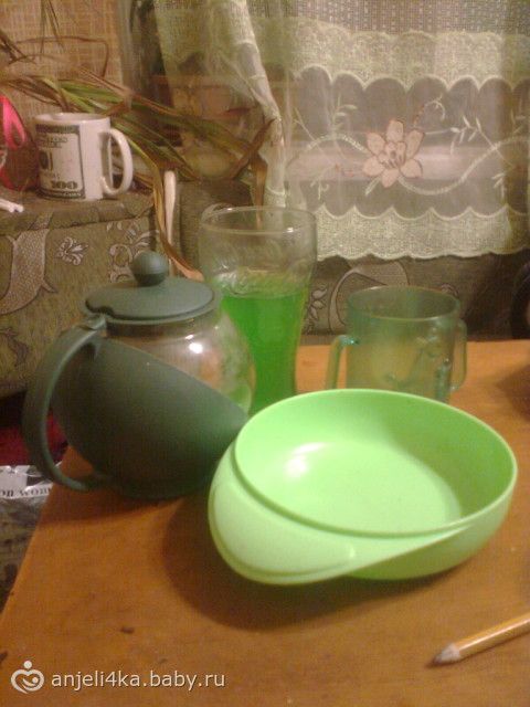 Это посуда и на заднем плане диванчик и шторки тож зеленые