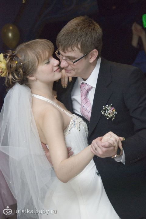 платье было куплено в первом же (и единственном) магазине)) (вы помните да, я вообще этого всего не хотела?)))) но кстати нравится оно мне до сих пор. надо померить что ли… )) а ещё на моей свадьбе практически не было «постановочных» фото. То есть фотограф просто ходил и снимал всё что происходило. Никто не позировал особо. Поэтому нет ни коллективного фото, да и нас с мужем вдвоём всего несколько кадров))) Зато очень много фотографий гостей. Вот кажется первый танец: