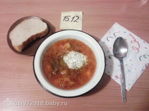 А вот и борщик подоспел. При вечернем освещении фото оставляет желать лучшего (((