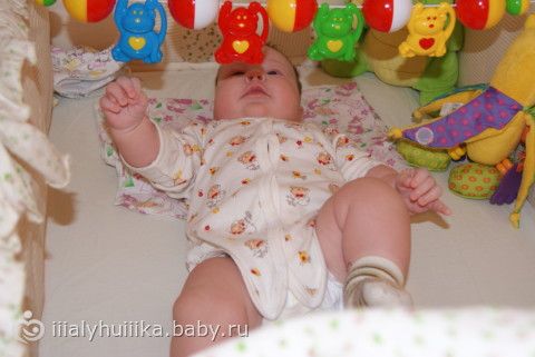 ну днем стал спать по чуточку ну час максимум, больше стал играться песни петь))) много звуков иссдает интересных))) но и не без капизов) про маму мы тоже не забывает и не даем разслабится)))