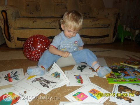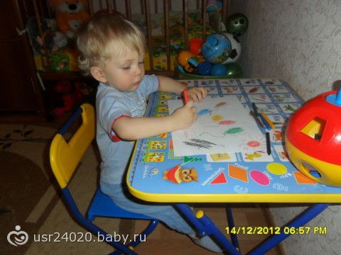 После этого у нас был перерыв с шарами. Но Миша находил их повсюду: на картинках в книжках, на матрасике, на столике. Царапал картинки пальчиками, хотел их взять.