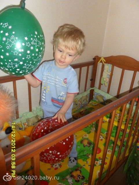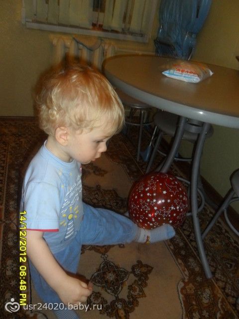 И вот уже два дня у нас дома живут два шарика (их было пять, но три лопнул песик). Миша целый день носится за ними, пинает , подбрасывает вверх, путается надуть. И даже во сне они снятся ему. Просыпаясь говорит: «Таки!». Вот такая нереальная любовь у моего сына к шарам.