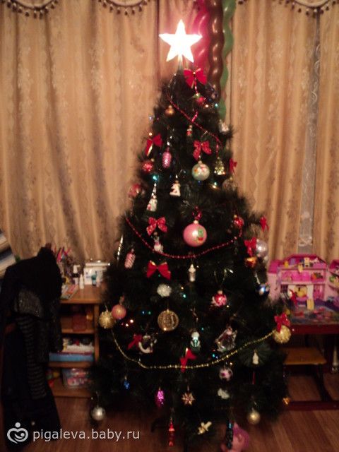 вчера нарядили нашу елку, правда, фоткала вечером, поэтому фото чуть расплывчатые9хотя вчера показались нормальными, просто я болею, поэтому такой фотограф из меня никудышный был)