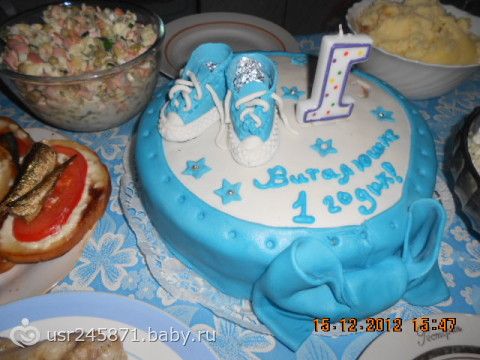 поздравляем МЫШАТ)))) СЫНУЛЯ такой сурьезный...) А торт сама пекла, рукастая?