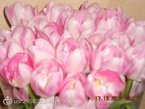 А ВОТ ЭТО ЦВЕТЫ, КОТОРЫЕ МНЕ ПОДАРИЛ МУЖ))))ТЮЛЬПАНЫ-29 ШТ))))