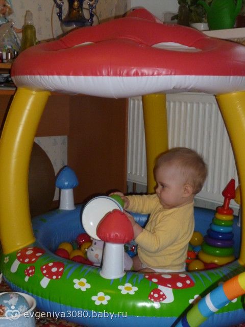 у нас надувной грибочек, ей так нравится и меня видно из него, не любит закрытые комплексы типа палаток