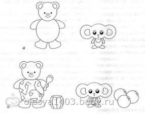 — Жили-были на свете Мишка и Чебурашка. Они очень любили покушать. Мишка любил сладкий мед, а Чебурашка – апельсины. Однажды объелись они, и животики у них стали толстенькие.