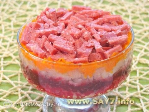 На дно салатницы или креманок выложить картофель, немного посолить, смазать майонезом.