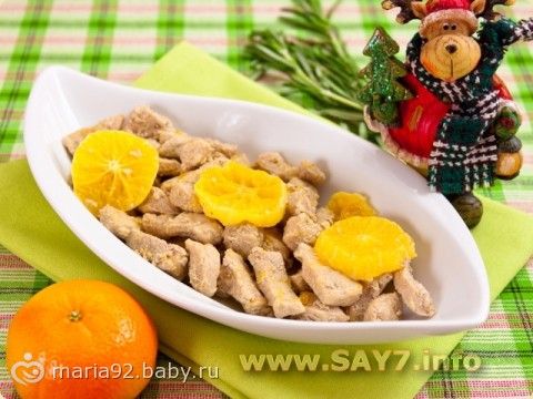 Добавить мандарины, аккуратно перемешать, жарить около 10-15 минут (под крышкой).
