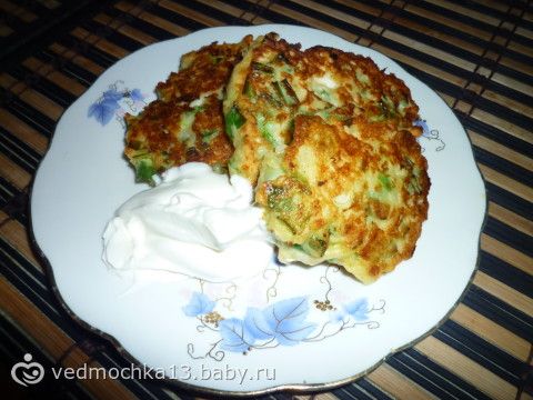 Инструкция: Кабачки нарезать и потушить до размягчения на масле. Затем протереть горячим и положить в него масло, размешать и охладить. В охлажденное пюре вбить яйца, посолить и поперчить по вкусу, добавитьсахар. Затем в массу высыпать муку и соду: все как следует размешать до появления пузырьков. После этого надо разливать тесто ложкой на сильно нагретую сковороду, хорошо смазанную маслом. Подавать оладьи с грибным соусом.