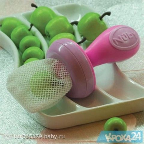 сеточка с ручкой, туда можно фрукты, ягоды положить и ребенок будет их кушать(приучаться к крупным кускам постепенно) и не подавиться большим куском. вот: