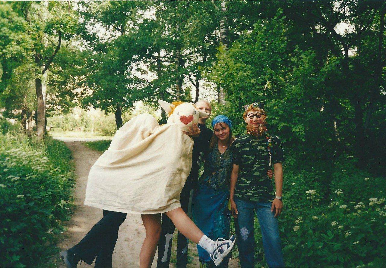 Это мы были пионер-вожатыми в лагере. 10 класс. Я была кощеем, меня плохо видно тут.
