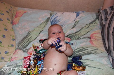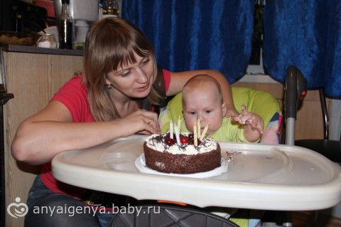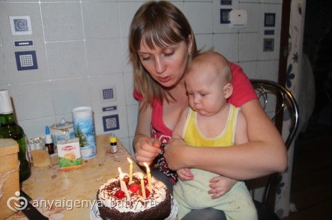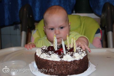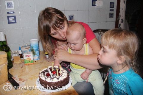 День был замечательным. Максимка получил подарок от Деда Мороза, Вечером мы отметили нашему счастью полугодие. Макс от души помял торт. Был всем доволен.