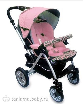 у нас вот такая, катаемся с января этого года, пока всем нравиться, единственный недостаток лично для меня — передние колеса, если были б одинарными — было бы легче по неровностям ездить, цена 4 — 5 тыс.р.еще очень понравилась из-за того что капюшон опускается до перекладины и ни ветер ни солнце ребенку не страшны