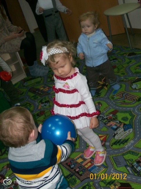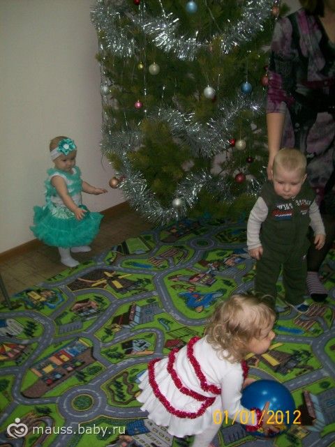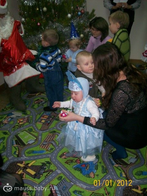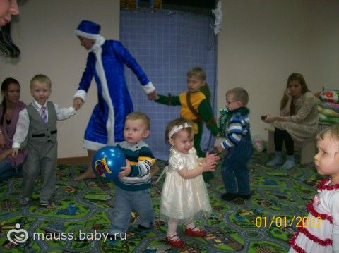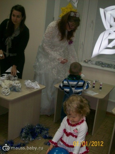 и она учила наших деток, как делать снежинки!!! в общем делать снежинки остались родители и один мальчик, который был старше всех, а наши молявки разбежались играть друг с другом и мячиками.затем позвали снегурочку, пришла снегурочка в костюме и в колготках.водили хоровод.кто как мог.детки разные, кто маленький, кто постарше.и тут все дождались Деда Мороза