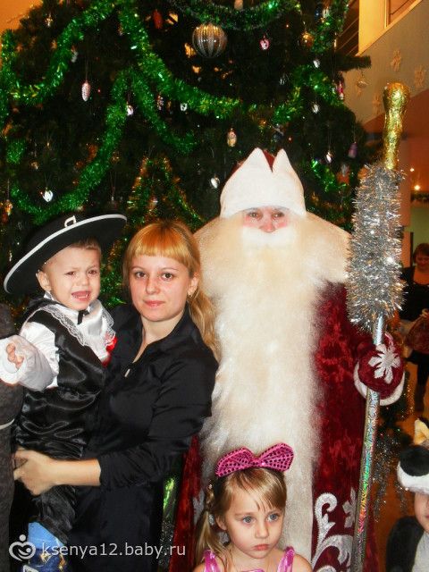 Принесли мне с работы пригласительную на елку в ГДК на 23 декабря. Горела желанием пойти как никогда, увидеть коллег и сынулю на елку сводить, но зная своего атамана чуток опасалась))). И как назло приперло нас 22 поехать в гости с ночевой в Иланск к друзьям в баню. В итоге деток уложили, ждал нас стол с пивком. Спать улеглись только в 3 ночи. Утром всех пришлось поднимать ни свет ни заря в 8.30. Все не выспавшиеся, выехали только в 9.45. Дома были в 10.20. Елка начинается в 11)). Я как электровеник давай бегать не зная за что схватиться, то ли вещи погладить, то ли голову причесать. Всё по-быстрому собрались, папа наш поехал на работу, мы на елку. Прибыли с опозданием в 20 минут. Зашли в зал, на сцене шло представление, сели, Серёня давай хлопать и порываться, чтобы я его отпустила потанцевать, но я то знаю чем это грозит и где потом его искать)). Ладно с горем пополам отсидели 20 мин. Потом представление продолжилось в паркетном зале где нас ждала большая елочка и дед мороз со всеми остальными персонажами. Но тут мне пришлось Серёню держать на руках. Потом он давай уже капризничать и вырываться, отпустила я его, он сразу в пляс, а потом смотрю притих за елкой, а он там игрухи срывает пока я не вижу)). Опять его на руки. Руки в конце вообще чуть не отвалились. Всё таки мой сынок еще маловат для такого рода праздников. Ему пока интересно только побегать и всё)). А насчет подарков мне вообще не понравилось, кому-то досталось и 3подарка, а мы т.к. маленькие и нигде не участвовали, то нам кое-как дали подарочек снеговичка маленького, и то я сама уже в очередь с сынулей встала