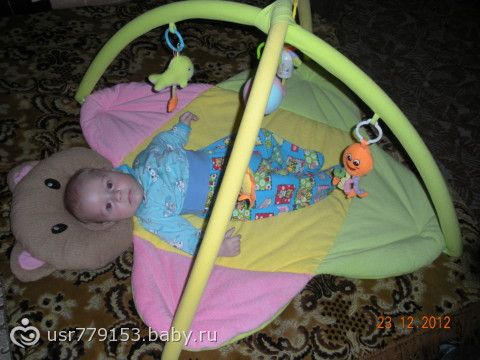 ну вот мы сильно почему то и не играем на нем. на руках лучше и то нужно ходить. если на руках и сидишь то такое не устраивает. думала на коврике будет играть. но никак не хочет. девочки у кого есть коврик, у вас играют малыши? или только мой не хочет(((
