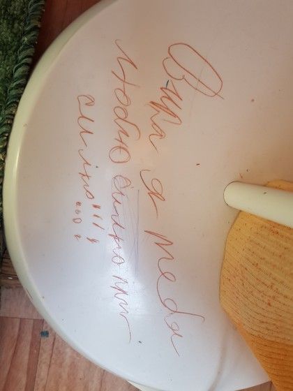 И была у нас сегодня субботняя уборка) дала тряпку в руки, и заставила отмывать все, что почеркано — стол, лампу, шкаф, второй шкаф. Многое оттерлось, но не все. Окно я увидела позже, потом тоже мыть будет. Я сегодня не ругалась) после вчерашнего общения со специалистом я пока что мудрая и спокойная)))))