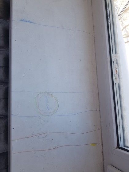 а это на окне. Она нарисовала какие то полоски, расставила туда игрушки. Вобщем, это было для игры.