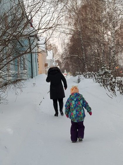 Потом мы долго шли по заснеженному морозному городу домой) Дети облазили все горы снега, которые встречались на пути) Покатались с 2 горок)