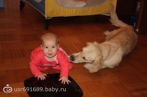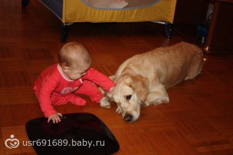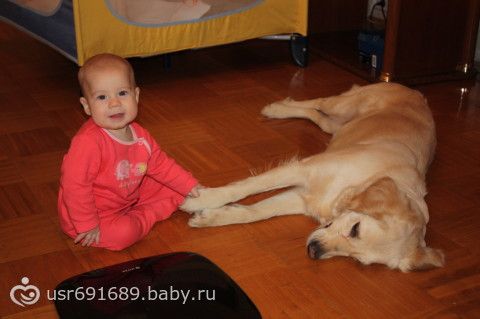 Почему то лобрадор меня не пугает… А вот если бы я увидела как наш ротвейлер лижет малютку-упала бы в обморок… Вообще это собака мужа и ей уже лет 10… Поэтому наверное я ей не доверяю, хотя мы с ней дружим и вообще я люблю животных.