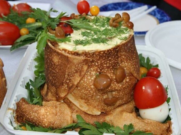 Дело в том, что салат держит форму гораздо хуже, чем паштет, и выкладывать его поверхность зеленым горошком занимает значительно больше времени. Такую работу можно доверить ребенку, объяснив ему, что это будет самое главное украшение новогоднего стола.