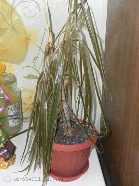 Купила драцену в магазине… недели две назад… пересадила и она начала пропадать… водой не заливаю… и вот такая она стала спустя неделю после покупки(держу не на подоконнике, а на столе)