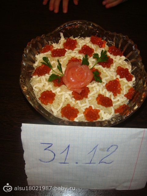 за 8!!! меня «убил» салат «рыбный торт»… слюнки потекли)))обажаю красную рыбу и икру… и выглядит он удивительно)))и роллы с рыбой люблю… сама такие делаю… и змейка у Вас милая...