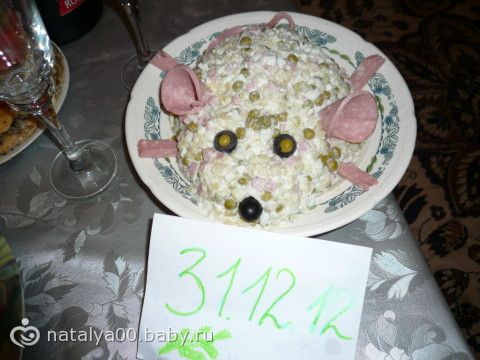 любимое блюдо змей-Мышка ( олевье в форме мышки)