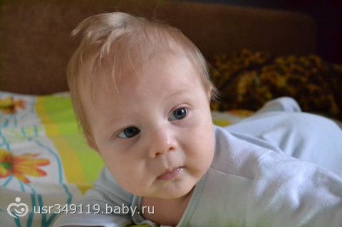 Сегодня нашему Зайчику 3 месяца. Активно жует свои ручки, изучает их, рассматривает. Пытается сесть, переворачиваться не хочет. Любит плавать с кругом, радует родителей.