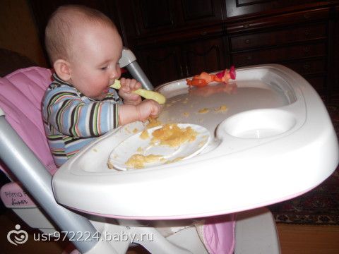 а-ха-ха… я с первого дня прикорма своей ложку дала - мы ещё и не такое умеем :-)))) Первое время приходилось мыть всю дочку, всю маму и полкомнаты
