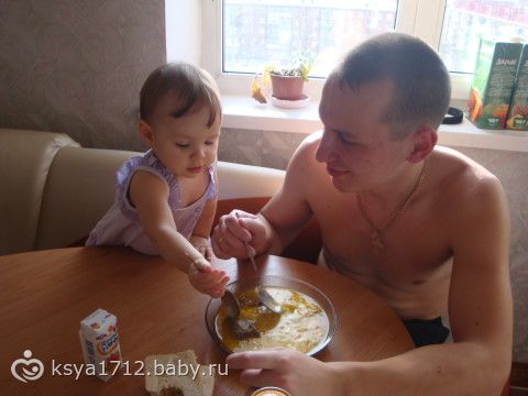 Кушает за общим столом — просто слазиет с диванчика и уходит с кухни)))