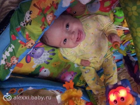 Лежит на коврике, а из солнышка музыка играет)) я подпеваю а Кирилл поворачивается и ржет))) так классно я балдею