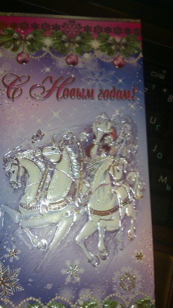 Открыточка от Лани пришла прям перед самым новым годом, напомнила мне сказку о Морозко, такая открыточка интересная, от нее как будто веет зимой, снегом!