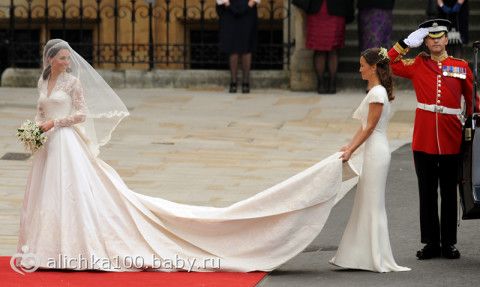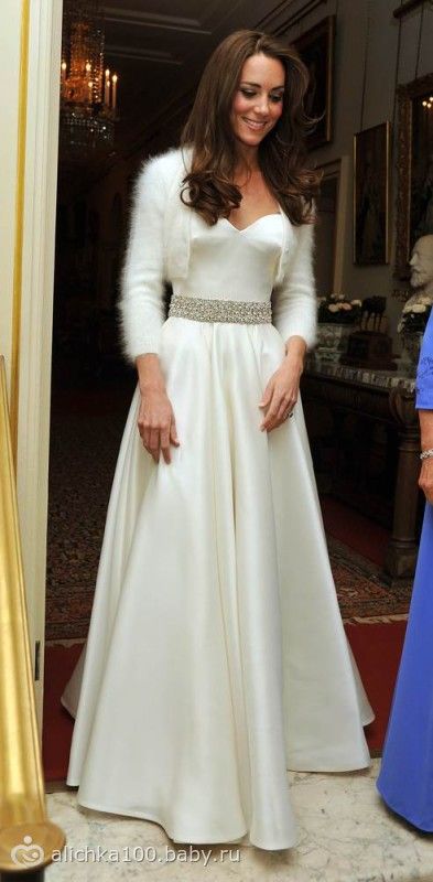 А вот это платье Кейт надела после официальной церемонии. Изящное атласное платье дело рук все той же Сары Бертон.