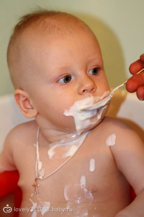 Я еще иногда всякие выскальзывающие кусочки на вилку натыкаю и так ему даю, оч удобно))