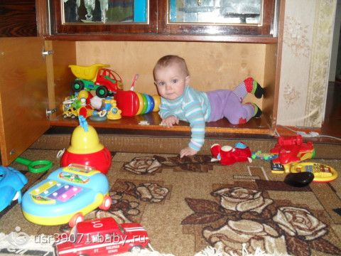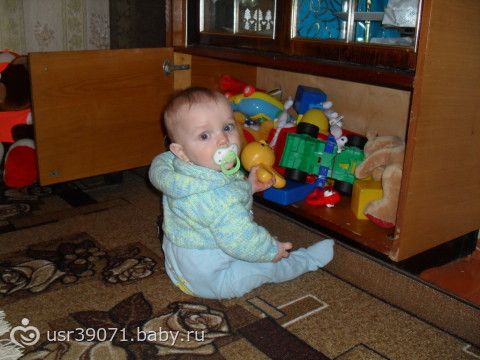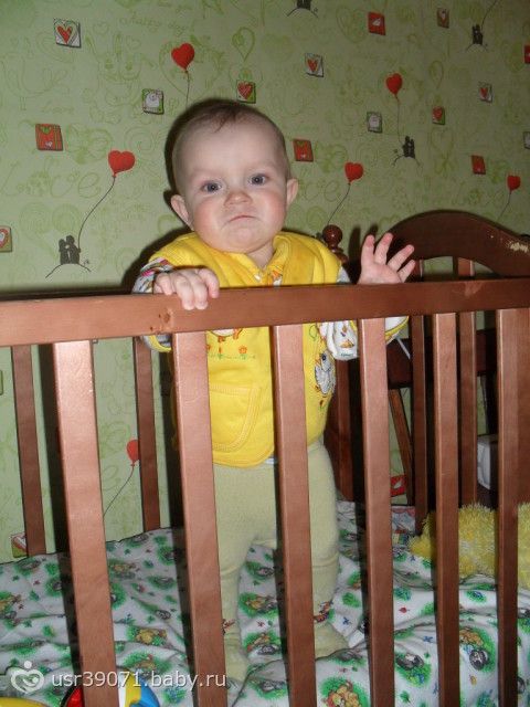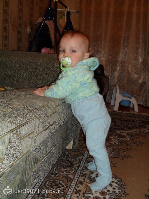 Ну вот нам уже 9. К этому времени мы уже многому научились: стоим у опоры, держимся то одной то двумя руками, ходим у опоры. Залезает на 30см. ступеньки. Сидит, ползает. Говорит (отдай, ма, кить). Если что то не хочет кивает нет. Здоровается как мужики за руку. Даёт пять). Когда его что то просишь подать подаёт.Играем в прятки, сажаю его в ходунки и он на них от меня прячется за предметы, а потом выходит, а я то куку то тюти))).Целует меня, когда попрошу.В туалет ходим на горшок.