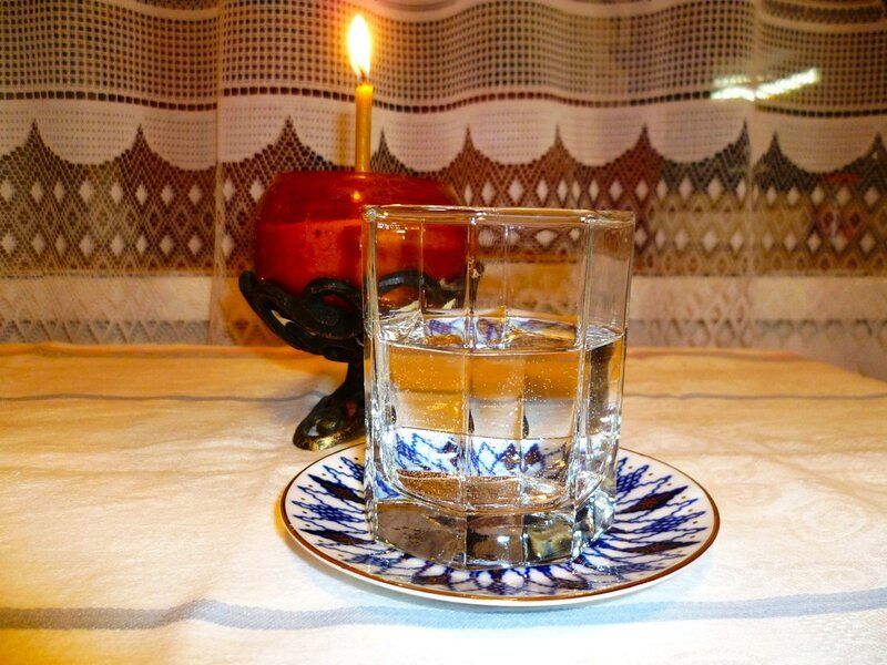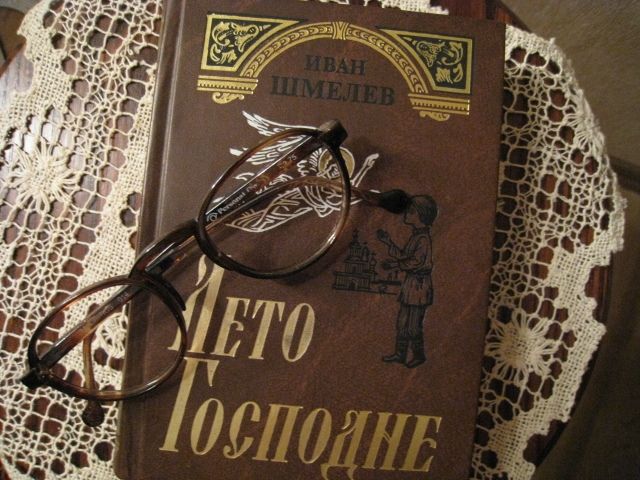 «В доме курят «монашками», для духа: Сочельник, а все поросенком пахнет. В передней — граненый кувшин, крещенский: пойдут за святой водой. Прошлогоднюю воду в колодец выльют, — чистая, как слеза! Лежит на салфетке свечка, повязанная ленточкой-пометкой: будет гореть у святой купели, и ее принесут домой. Свечка эта — крещенская. Горкин зовет — «отходная».»