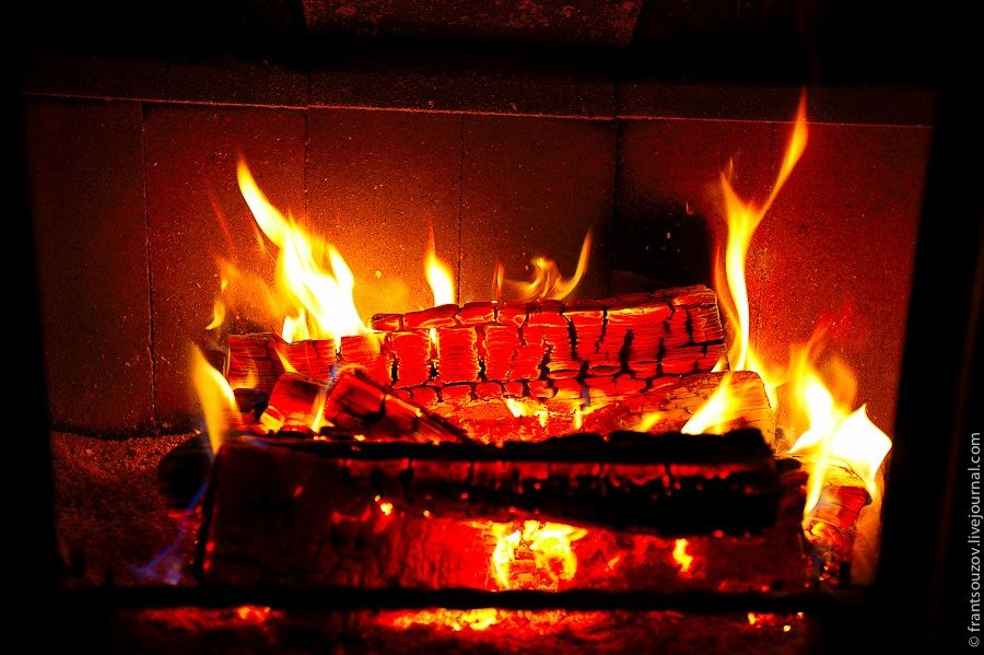 «Ни свет, ни заря, еще со свечкой ходят, а уже топятся в доме печи, жарко трещат дрова, — трескучий мороз, должно быть. В сильный мороз березовые дрова весело трещат, а когда разгорятся — начинают гудеть и петь.»