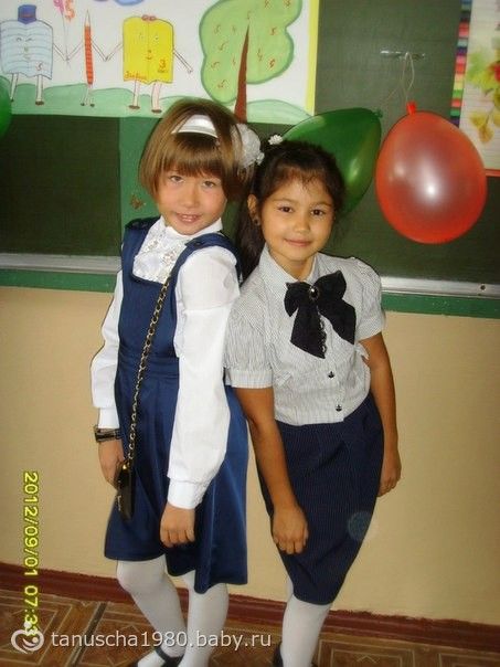 На одной девочке — сарафан, на другой: юбка-фонарик.