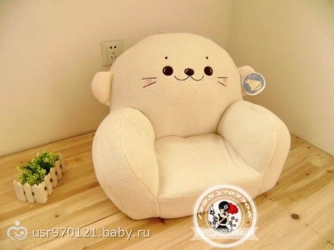 Нам подарили мягкое креслице ввиде зайца =) Но он у нас такой угловатый, а вот на последней картинке такой округлый, прикольный=))