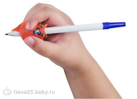 Вчера купила ему ручку из серии «моя первая ручка» с окошечками для большого и указательного пальца.