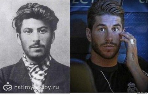 Иосиф Сталин в молодости и футболист Серхио Рамос. Разница между фотографиями около ста лет)